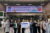 [ 한국미디어뉴스 이보영 기자 ] 수원시여성리더회가 16일 수원시청 본관 1층에서 저소득가정을 위한 후원금 300만 원을 수원시에 전달했다. 후원금은 형편이 어려운 가정에 지원할 예정이다. 전달식에는 김은주 수원시 여성가족국장, 김수민 수원시여성리더회 총회장 등이 참석했다. 김수민 총회장은 “우리 여성리더회 임원진과 회원들의 따뜻한 마음을 모았다”며 “형편이 어려운 가정에 그 마음이 잘 전달되길 바란다”고 말했다. 수원시여성리더회는 수원시 양성평등기금 사업으로 운영되는 ‘수원시 여성지도자대학’ 수료생들로 구성된 단체다. 여성의 권익 증진과 복지 향상, 지역사회 발전을 목표로 2004년 12월 출범했다. 수료생 1240명이 활동 중이며, 매년 저소득가정 후원금과 물품 기부, 한부모가정 지원, 지역 복지시설 봉사활동 등 다양한 사회공헌 활동을 하고 있다.
