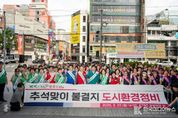 [ 한국미디어뉴스 이원영 기자 ] 부산진구는 지난 22일 서면1번가 일원에서 공무원, 새마을회·바르게살기협의회·한국자유총연맹 유관단체와 주민 등 약 150명이 참여한 가운데 추석맞이 도시환경정비 행사를 가졌다고 밝혔다. 이번 행사는 다음달 추석명절을 앞두고 전국 동시에 진행됐던 ‘대한민국 새단장’캠페인에 맞추어 관내 주요 관광지인 서면 일원에서 민과 관이 힘을 합쳐 주요 불결지를 쾌적한 환경으로 개선하기 위해 마련됐다. 특히 다음 달 17일부터 일주일 동안 부산에서 개최되는 전국체전을 대비해 부산의 중심지인 서면을 찾는 전국의 관광객에게 깔끔한 도심 이미지를 제공하기 위해 구 역점 시책인 “내 집(점포) 앞 내가 쓸기 운동”을 서면 상가 점포에 다시 한번 알리는 의미 있는 시간을 가졌다. 김영욱 구청장은 “이번 행사는 주민이 주관하여 관내 환경정비 행사를 마련한 데 큰 의미가 있으며 특히 대한민국 새단장 캠페인 역시 부산진구가 중심이 되어 추진하여 다가올 전국체육대회 또한 시민의 체육 축제가 될 수 있도록 준비하는 데 지원을 아끼지 않겠다”고 말했다.