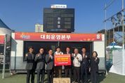 [ 한국미디어뉴스 이원영 기자 ] 합천군체육회(회장 유달형)는 5일 ‘2025 추계 한국여자축구연맹전’ 대회 참가선수를 위한 양파라면 전달식을 가졌다. 이날 진행된 전달식에서 합천군체육회는 한국여자축구연맹에 200만원 상당의 합천 양파라면 156박스를 전달하며, 우승을 위해 구슬땀을 흘리고 있는 선수들을 격려했다. 유달형 합천군체육회장은 “이번 대회를 위해 합천에 방문해주신 선수 여러분께 감사드리며, 대회 우승을 위해 노력하고 있는 선수들을 위해 작은 정성을 전하고 싶었다”며, “그동안 갈고 닦은 기량을 마음껏 펼치시고, 합천에서 많은 추억도 남기고 가시기 바란다”고 전했다. 양명석 한국여자축구연맹 회장은 “여자축구 발전을 위해 큰 힘을 보태주신 합천군체육회에 깊은 감사의 말씀을 드린다”며, “앞으로 여자축구 발전을 위해 연맹도 더욱 열심히 노력하겠다”고 밝혔다.