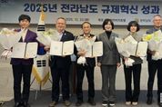 [ 한국미디어뉴스 이종철 기자 ] 전라남도는 23일 목포 샹그리아호텔에서 ‘2025 규제합리화 우수 시군 시상식’을 열고 한 해 규제 개선에 기여한 시군의 성과를 공유했다. 행사는 ▲우수 시군 시상 ▲규제개선 사례 발표 ▲인문 교양 특강 순으로 진행됐다. 우수 시군 시상에서는 광양시가 규제로 중단된 지역 사업을 발굴하고 해결한 성과를 인정받아 최우수상과 상금 400만 원을 받았다. 고흥군과 신안군은 중앙 규제 신규 발굴과 현장 토론회를 통한 개선 노력을 높이 평가받아 우수상과 상금 300만 원을 수상했다. 또 기업의 규제샌드박스 신청을 지원한 담양군, AI 등 신산업 분야 규제개선을 추진한 해남군, 산업단지 내 불합리한 규제 발굴에 힘쓴 함평군이 장려상과 상금 180만 원을 각각 받았다. 규제개선 사례 발표에서는 함평군이 ‘농공단지 건폐율 완화(70%→80%)’ 사례를, 신안군이 ‘가공전선로 설치를 위한 습지보전법 시행령 개정’ 사례를 소개했다. 두 사례는 지난 11월 열린 2025 지방규제혁신 우수사례 경진대회에서 각각 최우수상과 우수상을 받았다. 행사 마지