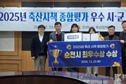 [ 한국미디어뉴스 이종철 기자 ] 순천시는 2025년 전라남도 축산시책 종합평가에서 최우수상을 수상했다고 23일 밝혔다. 시는 가축분뇨의 적정 처리와 악취 저감, 축산 환경 개선을 중심으로 한 축산 시책을 시민과 함께 추진해 왔으며, 이러한 노력이 이번 평가에서 최우수상 수상으로 이어졌다. 특히 축산단체와 지역 주민이 함께 만들어 낸 성과를 지역사회와 나누기 위해 시상금 일부를 조곡동 취약계층 나눔 활동으로 실천했다. 조곡동 취약계층 10가구를 대상으로 따뜻한 겨울 나기를 돕기 위한 전기매트를 구입해 전달했다. 이번 나눔은 축산 정책 추진 성과를 지역사회와 공유하고, 상생의 가치를 실천하기 위해 마련됐다. 시 관계자는 “축산시책 평가 최우수상 수상은 현장 농가와 시민 모두의 협력으로 이뤄진 결과”라며, “앞으로도 환경과 주민, 농가가 함께 상생하는 축산 정책과 더불어 지역사회 나눔을 지속적으로 실천해 나가겠다”고 말했다.