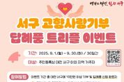 [ 한국미디어뉴스 이보영 기자 ] 대전 서구는 9월 30일까지 한 달간 ‘서구 아트페스티벌’과 연계한 ‘고향사랑기부 답례품 트리플 이벤트’를 진행한다고 4일 밝혔다. 이번 이벤트는 9월 4일 ‘고향 사랑의 날’을 기념하고, 오는 10월 10일부터 12일까지 개최되는 서구 아트페스티벌과 연계함으로써 고향사랑기부제에 대한 관심과 참여를 늘리기 위해 마련됐다. 주민등록상 대전 서구 외 지역 거주자가 ‘고향사랑e음’ 홈페이지 접속 또는 NH농협을 방문하여, 서구에 고향사랑기부금을 10만 원 이상 기부하고 답례품을 신청하면 자동으로 이벤트에 응모된다. 추첨을 통해 △3만 원 상당의 답례품 추가 제공(50명) △아트페스티벌 개막식 무대 앞 좌석 및 스탠딩석 제공(80명) 등의 혜택이 주어진다. 서철모 청장은 “고향사랑기부제가 지역 발전을 위한 소중한 재원으로 자리매김할 수 있도록 다양한 참여 기회를 마련하고 있다”며 “이번 이벤트가 기부 문화 확산과 함께 서구 아트페스티벌의 열기를 더하는 계기가 되기를 바란다”고 말했다. 고향사랑기부제는 개인의 주민등록상 주소지를 제외한 다른 지자체에 연간 최대
