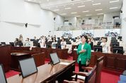 [ 한국미디어뉴스 이원영 기자 ] 제주특별자치도의회는 9월 22일 오전 10시, 본회의장에서 귀덕초등학교 4학년 학생 10명과 납읍초등학교 4학년 학생 15명 등 총 25명을 대상으로 청소년의회 모의의회 의정체험을 실시했다. 이날 의정체험에 참여한 학생들은 실제 본회의 절차에 맞추어 도정·교육행정에 대한 질의와 답변, 조례안에 대한 찬반토론, 전자표결을 통한 의결, 자유발언 등 전 과정을 직접 경험하며, 의회의 기능과 역할을 생생하게 배울 수 있었다. 또한, 도의원과의 만남 시간에는 고의숙 의원과 학생들은 의회의 기능과 도의원의 역할 등에 대해 자유롭게 질문하며 의미 있는 소통의 시간을 가졌다. 고의숙 의원은 “도의회는 도민의 의견을 수렴하고 이를 조율해 더 나은 제주를 만들어가는 기관”이라며,“오늘의 의정체험이 학생들이 민주주의를 올바르게 이해하고 생각을 키우는 데 도움이 되길 바란다”고 전했다.