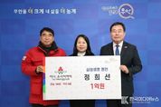 [ 한국미디어뉴스 이종철 기자 ] 전남 무안군은 지난 26일 삼성생명 정희선 명인의 무안군 제6호(전남 166호) 아너소사이어티 회원 가입식을 개최했다. 이날 가입식에는 김산 군수를 비롯해 전남사회복지공동모금회 허영호 회장 및 관계자 등이 참석한 가운데 인증패를 전달하며 축하의 뜻을 전했으며, 정희선 삼성생명 명인이 기부한 성금은 전남사회복지공동모금회를 통해 관내 취약계층 및 사회복지시설 지원 등으로 사용될 예정이다. 정희선 삼성생명 명인은 “의미있는 따뜻한 나눔활동에 함께 참여할 수 있어서 기쁘다”며, “그동안 고객과의 신뢰를 바탕으로 성장한 만큼, 앞으로도 지역사회와 상생하며 따뜻한 나눔을 지속적으로 실천해 나가겠다”고 소감을 밝혔다. 김산 군수는 “지역사회를 위한 꾸준한 나눔활동으로 선한 영향력을 펼쳐 주신 정희선 삼성생명 명인께 깊이 감사드린다”며, “기탁해 주신 소중한 성금은 도움이 필요한 이웃들에게 희망과 용기가 될 수 있도록 뜻깊게 전달하겠다”고 밝혔다. 한편, 아너 소사이어티(Honor Society)는 사회복지공동모금회가 운영하는 1억 원 이상을 기부했거나 5년 이내 기부 약정한