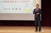 [ 한국미디어뉴스 이원영 기자 ] 이완섭 서산시장이 20일 해미중학교 학생 180여 명을 대상으로 진로 특강을 진행했다. 이번 특강은 ‘세상의 중심은 나 자신이다’를 주제로 학생들에게 올바른 가치관 형성과 진로 선택에 도움이 될 조언을 전하고자 마련됐다. 이 시장은 “작은 눈덩이가 굴러가 큰 눈사람이 되듯, 작은 꿈이라도 품고 키워가는 과정이 무엇보다 중요하다”라며 “학생들에게 자기 자신을 믿고 가능성에 한계를 두지 말아야 한다”라고 말했다. 또한, 청소년이 빠지기 쉬운 ‘습관의 덫’에서 벗어나기 위해 일상 속 작은 변화를 만드는 행동의 실천이 필요하다고 강조했다. 이어, 긍정적인 사고와 적극적인 행동과 함께 어떤 어려움에서도 포기하지 않고 끝까지 도전하는 자세를 당부했다. 특히, 사회에서 중요하게 여겨질 자세로 ‘5S5품’을 소개했다. 5S는 친절(Smile), 간편(Simple), 유연(soft), 신속(Speed), 깔끔(Smart)을, 5품은 두품(창의), 입품(칭찬), 심품(감성), 손품(소통), 발품(현장)을 뜻한다. 특강이 마무리된 후에는 학생들과