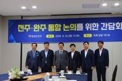 [ 한국미디어뉴스 이원영 기자 ] 안호영 국회의원(전북 완주·진안·무주)은 9월 25일, 국회에서 열린 완주·전주 행정통합 논의를 위한 6자 간담회에 참석해 갈등 해소와 절차적 정당성 확보의 필요성을 강조했다. 이번 간담회는 윤호중 행정안전부 장관 주재로 안호영 의원, 이성윤 의원, 김관영 전북특별자치도지사, 우범기 전주시장, 유희태 완주군수가 참석해 심도 있는 의견을 나눴다. 윤 장관은 모두발언에서 “작년 6월 완주군민 건의로 통합 논의가 시작됐고, 올해 4월 지방시대위원회가 ‘주민 지지와 공감대’를 전제로 통합 방안을 의결했다”고 설명하며, “주민 갈등과 논의 지연으로 어려움이 커지고 있는 만큼 주민투표나 여론조사 등 공론화 과정을 통해 절차적 정당성을 확보해야 한다”고 강조했다. 또한 그는 “2013년 전주·완주 통합 논의도 비록 주민투표 반대로 무산됐지만, 주민투표 자체에 대한 합의는 있었다”고 덧붙였다. 안호영 의원은 모두발언에서 “전북은 이재명 정부들어 중요한 발전 기회를 맞았지만, 완주·전주 행정통합 논의를 둘러싼 갈등으로 인해 소중한 기회를 놓칠까 우려된다”며, “최종 결정을 내릴