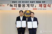 [ 한국미디어뉴스 이원희 기자 ] 인천 동구는 지난 25일 동원로엑스㈜(인천㈜ 대표이사 최안석)와‘녹지활용계약’을 체결했다고 밝혔다. 인천 최초로 진행된 이번 계약은 민간기업이 소유한 사유지를 주민에게 열린 녹지로 제공하는 새로운 방식의 민관 협력 모델이다. ‘녹지활용계약’은 ‘도시공원 및 녹지 등에 관한 법률’ 제12조에 근거한 제도로, 토지 소유자와 지자체가 계약을 통해 도시지역 내 식생이 양호한 사유지를 주민에게 제공할 수 있도록 하고 있다. 이번 계약 대상지는 동원로엑스가 소유한 인천 동구 만석동 2-252번지 내 약 9천100㎡(2천760평) 규모의 토지다. 해당 부지는 공시지가만 약 79억 원에 달하는 대규모 사유지로, 국유지 대부했다고 가정해보면 연간 약 1억 6천500만 원의 대부료가 발생된다. 이번 민관협력 모델에서는 동원로엑스가 이 토지를 무상으로 동구에 임대하면, 동구는 계약 면적에 대한 재산세를 감면하여 ‘건축법’상 의무 조경으로 인정하기로 했다. 계약기간은 최초 10년이며, 이후 5년 단위로 갱신이 가능하다. 동구는 해당 부지를 단순 개방에 그치지 않고, 주민들이 쾌적하게