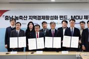 [ 한국미디어뉴스 이원영 기자 ] 충남도는 19일 도청에서 농업정책보험금융원, 충남테크노파크, 충남경제진흥원과 ‘충남 농축산 지역경제 활성화 펀드’ 업무협약(MOU)을 체결했다. 이번 협약은 도내 농축산식품 기업 발굴·투자를 통해 농축산 분야 벤처 창업의 혁신 성장 체계를 구축하고자 마련했다. 전형식 정무부지사와 서해동 농업정책보험금융원장, 서규석 충남테크노파크 원장, 한권희 충남경제진흥원장, 운용사인 류준걸 와프인베트먼트 대표이사, 임성원 노틸러스인베스트먼트 대표이사 등 관계자 20여 명이 참석한 가운데, 이번 행사는 경과 보고, 협약 설명 및 서명 등의 순으로 진행했다. 이번 협약으로 각 기관은 도내 농축산식품 분야 창업 생태계 활성화와 스타트업 성장 지원을 강화하기 위한 ‘충남 농축산 지역경제 활성화 펀드’ 제1호를 결성·운영하는 데 협력한다. 구체적인 협력 내용은 △농림수산식품기업 발굴·육성을 위한 정보 공유 △투자 및 자금 연계 관련 업무 △멘토링 및 교육 등 벤처 창업, 투자 활성화를 위한 행사 공동 개최 △지역경제 활성화 필요 업무 등이다. 충남 농축산 지역경제 활성화 펀