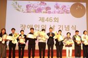 [ 한국미디어뉴스 이원영 기자 ] 안양시는 20일 오후 2시 시청 강당에서 제46회 장애인의 날 기념식을 열고 장애인과 비장애인이 함께 어우러지는 화합의 장을 마련했다고 밝혔다. '당연한 일상, 모두가 누릴 수 있도록'을 주제로 (사)안양시장애인단체총연합회가 주관한 이날 행사에는 관내 장애인 단체 회원과 장애인 복지 시설 종사자, 시민 등 900여 명이 참석했다. 기념식 행사는 장애인 인권 헌장 낭독을 시작으로 장애인 인권·복지 증진에 기여한 모범 장애인과 장애인 복지 유공자 등 30명에 대한 표창 수여, 저소득 이웃을 위한 안양시장애인단체총연합회 생활지원금 전달 순으로 진행됐다. 특히 이날 행사는 장애인들이 직접 주도하는 문화 축제 형식으로 꾸며졌다. 'KBS 아침마당-도전 꿈의 무대' 우승자인 장애인 가수 임일주 씨의 축하 공연을 비롯해 장애인복지회 소속 '소소별별'의 악기 연주, 장애인 부모연대의 경기민요 공연이 이어져 참석자들의 호응을 얻었다. 시청 홍보홀과 민원실 앞 광장에서는 장애인의 자립을 보여주는 부대 행사도 마련됐다. 발달 장애인 바리스타가 운영하는 이동식 카페 '마카롱'이 문을