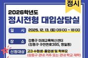 [ 한국미디어뉴스 이보영 기자 ] 서울 강동구는 오는 12월 13일, 수험생들의 효율적인 정시 지원 전략 수립을 돕기 위한 ‘2026학년도 정시전형 대입상담실’을 운영한다고 13일 밝혔다. 이번 대입상담실은 정시 지원을 앞둔 수험생과 학부모를 대상으로, 2026학년도 대입 정시전형 관련 궁금증을 해소하고 개인별 맞춤형 대학·전공 지원 전략 수립을 지원하기 위해 마련됐다. 상담은 수능성적 통지 직후 주말인 12월 13일에 강동구 미래교육혁신센터에서 진행되며, 총 18개 상담 부스를 운영해 회당 40분간 심층 상담이 이뤄질 예정이다. 이를 통해 수험생과 학부모가 안정적으로 정시전형을 준비할 수 있도록 지원한다. 상담은 한국대학교육협의회 대입상담교사단 소속 교사들이 맡아 전문 대입 상담 프로그램을 활용, 정확하고 체계적인 상담 서비스를 제공한다. 참여 신청은 오는 11월 18일부터 통합교육포털 ‘강동 미래온’ 누리집(홈페이지)을 통해 온라인으로 할 수 있으며, 선착순으로 접수받는다. 이수희 강동구청장은 “시기별‧개인별 맞춤 상담을 통해 수험생과 학부모님들이 체계적으로 정시 지원 전략을 세울