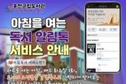 [ 한국미디어뉴스 이원영 기자 ] 홍천군립도서관은 2026년 2월부터 군민의 독서 정보 접근성을 높이기 위해 매주 1회 우수 도서를 선별해 요약본을 제공하는 ‘아침을 여는 독서 알림톡’ 서비스를 운영한다. ‘아침을 여는 독서 알림톡’은 홍천군립도서관 정회원 400명을 대상으로 매주 화요일에 운영하는 대면하지 않는 독서 지원 서비스다. 매주 베스트 셀러, 오래 사랑받는 도서, 신간 도서, 세계 흐름 도서 등으로 구성한 도서 6권의 요약본을 휴대전화 알림톡(카카오 알림톡)으로 제공한다. 바쁜 일상에서도 짧은 시간에 책의 핵심을 읽을 수 있도록 내용을 간추려 전달하는 것이 특징이다. 서비스 관련 자세한 내용은 홍천 군립도서관 누리집(연봉, 서석, 남면, 내면, 별빛나루, 홍천 어린이도서관)에서 확인할 수 있다. 기타 문의는 홍천 군립도서관으로 하면 된다. 이성희 교육체육과장은 “독서 알림톡 서비스가 홍천 군민이 일상에서 자연스럽게 책과 만나는 계기가 되길 바란다”라며, “앞으로도 생활 속 독서 문화 확산을 위해 다양한 독서 지원사업을 지속적으로 운영해 나가겠다”라고 말했다.