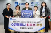 [ 한국미디어뉴스 이보영 기자 ] 수원특례시가 행정안전부 주관 ‘2025년 공유재산 관리 분석·진단 평가’에서 최우수 지자체로 선정돼 특별교부세 4000만 원을 확보했다. 시상식은 22일 정부서울청사에서 열렸다. 행안부는 전국 243개 지방정부를 대상으로 ▲공유재산의 체계적 관리 여부 ▲유휴 공유재산 활용을 통한 재산 가치 제고 ▲사용료·변상금 부과 및 징수의 적정성 ▲재정 건전성 기여도 등 공유재산 관리·활용 실적을 분석·진단해 우수 지자체를 선정했다. 수원시는 2024년에 이어 2년 연속 최우수 지자체에 선정돼 2년간 총 8000만 원의 특별교부세를 확보했다. 수원시는 공유재산 사용료와 변상금의 정확한 부과, 철저한 체납 관리 등 건전한 재정 운영 기반을 마련한 점을 인정받았다. 또 공유재산 관리의 효율성과 투명성을 높이기 위해 체계적인 공유재산 관리 시스템을 구축했다. 부서별로 분산돼 있던 관리 체계는 총괄 운영 방식으로 전환했다. 공유재산의 누락을 방지하고 현행화를 지속해서 추진했고, 유휴 공유재산을 적극적으로 활용해 재산 가치를 높이고 세입을 확충했다. 이재준 수