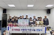 [ 한국미디어뉴스 이보영 기자 ] 수원시 영통구 매탄2동 새마을문고은 지난 29일, 추석을 맞아 관내 e편한세상 경로당에 두유, 손톱깎이 세트, 백미 10kg, 커피믹스, 비즈팔찌를 기부했다. 매탄2동 새마을문고는 2024년 9월, 매탄2동 e편한세상아파트 경로당과 정기적 후원 및 자원봉사 연계를 위한 1:1 결연 협약식을 진행했으며, 협약 이후 수차례 경로당에 후원 물품을 기부했다. 이날 매탄2동 새마을문고는 두유, 손톱깎이 세트, 백미10kg, 커피믹스, 비즈팔찌를 기부했으며, 특히 비즈팔찌는 지난 7월, 매탄2동 새마을문고를 방문한 학생들과 만들었던 팔찌라 더욱 의미가 크다. 이인실 새마을문고 회장은 “앞으로도 관내 어르신들께 필요한 사항에 대해 적극적으로 지원하겠으며, 자주 찾아뵙고 지역사회 나눔 분위기를 확산하겠다”고 말했다. 승병숙 매탄2동장은 “정을 나눠주신 새마을문고 회원분들께 감사드리며, 앞으로도 경로당 자매결연 사업이 활성화되어 따뜻한 매탄2동이 되도록 지원을 이어나가겠다”고 전했다.
