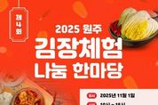 [ 한국미디어뉴스 이원영 기자 ] (사)원주시농촌체험휴양마을협의회가 주관하는 2025년 제4회 김장체험·나눔 한마당 행사가 오는 11월 1일, 호저면 섬강매향골체험휴양마을에서 개최된다. 올해로 4회째를 맞은 이번 행사는 각 가정의 김장비용 부담을 덜고, 우리 지역에서 갓 수확한 신선한 재료로 건강한 김치를 직접 담그는 특별한 경험을 제공하기 위해 마련됐다. 참가비는 가족당 85,000원이다. 총 11㎏의 김장김치를 담그며, 그중 1㎏은 지역 내 어려운 이웃에 기부해 나눔의 의미를 더할 예정이다. 협의회 관계자는 “깊어지는 가을, 온 가족이 함께 김치를 만들며 즐거운 추억을 쌓고 우리 주변의 이웃과 따뜻한 마음을 나누는 뜻깊은 시간이 되길 바란다”라며, “시민 여러분의 많은 관심과 참여를 부탁드린다”라고 말했다.