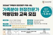[ 한국미디어뉴스 김일규 기자 ] 경기도여성가족재단은 4~6월 총 5회에 걸쳐 경기도 내 가족분야 전문상담사 250명을 대상으로 가족분야 현장전문가 역량강화 교육을 실시한다. 이번 교육은 가족분야 상담을 필요로 하는 경기도민에게 보다 전문적이고 다양한 영역의 상담서비스를 제공할 수 있도록, 현장에서 활동하는 상담사의 실천 역량을 강화하기 위해 마련됐다. 최근 가족분야 상담 현장에서 중요성이 커지고 있는 우울·자살 위험, 중독, 은둔·고립, 장애·입양 등 다양한 유형별 특성과 주요 이슈에 대한 이해 및 상담사례 등으로 현장에서 곧바로 적용할 수 있도록 프로그램을 구성했다. 모집대상은 경기도 내 가족분야 전문상담사이며, 교육은 차수별 50명 내외로 총 5차에 걸쳐 운영된다. 신청기간은 4월 7일부터 5월 31일까지이며, 재단 누리집을 통해 차수별로 선착순 모집한다. 김혜순 재단 대표이사는 “이번 역량강화교육은 도내에서 활동하는 가족분야 전문상담사들의 상담 현장 대응력과 전문성 제고를 위해 기획한 것”이라면서 “가족분야 현장전문가들과 함께 할 수 있는 사업을 마련하겠다”고 말했다.