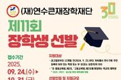 [ 한국미디어뉴스 이원영 기자 ] (재)연수큰재장학재단은 미래 지역사회를 이끌어 갈 우수 인재 발굴과 양성을 위해 제11회 장학생을 선발한다. 이번 장학생은 ▲복지, ▲특기(개인), ▲특기(단체), ▲연수꿈응원, ▲학업우수, ▲연수큰재(다년간) 등 총 6개 분야에서 지원자를 모집하며, 지원 규모는 약 1억 8천만 원에 달한다. 특히 올해는 장학생 지원 기준을 개선하고 추천권자를 조정하는 등 예년에 비해 보다 폭넓은 학생들에게 기회를 제공하는 방향으로 개편됐다. 선발 절차는 ▲공고 및 접수(9월 24일~10월 31일), ▲서류심사, ▲연수큰재(다년간) 면접 심사 및 선발 심의위원회 심의, ▲재단 이사회 최종 확정 순으로 진행된다. 선발 결과는 11월 말에 발표할 예정으로 자세한 사항은 연수구청 누리집 공고문을 통해 확인할 수 있다. 이재호 연수구청장은 “연수큰재장학재단은 미래 꿈나무들이 자신의 꿈을 마음껏 펼칠 수 있도록 지원하고 있다.”라며 “앞으로도 내실 있는 다양한 장학사업을 통해 교육 기회의 균등과 인재 양성에 최선을 다하겠다.”라고 말했다.