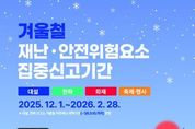 [ 한국미디어뉴스 이원영 기자 ] 행정안전부는 올해 12월부터 내년 2월까지 ‘겨울철 재난안전 위험요소 집중신고기간’을 운영한다. 행정안전부는 계절별 중점 관리가 필요한 위험요소를 선정해 집중신고기간을 운영하고 있다. 지난해 겨울철 집중신고기간에는 제설 요청 등 대설 신고 5천여 건과 도로·인도 결빙 등 한파 신고 3천 6백여 건이 접수됐으며, 접수된 신고는 관계기관에서 신속히 처리해 국민 불편을 최소화했다. 이번 겨울철 집중신고 대상은 대설, 한파, 화재, 축제·행사 4개 유형이다. 국민 누구나 주변의 위험 요소를 발견하면 안전신문고 내 ‘겨울철 집중신고’ 바로가기 메뉴를 통해 신고할 수 있으며, 조치 결과는 문자 등으로 안내된다. 사고 예방·개선에 기여한 우수 신고는 심사를 거쳐 최대 100만 원의 포상금(온누리 상품권)이 지급될 예정이다. 김용균 안전예방정책실장은 “우리 주변의 작은 위험요소에도 관심과 주의를 기울이는 것이 재난·사고를 막는 가장 효과적인 예방책”이라고 강조하며, “겨울철 빈발하는 재난·사고 예방을 위해, 위험요소를 발견하면 안전신문고를 통해 적극 신