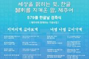 [ 한국미디어뉴스 이원영 기자 ] 제주특별자치도는 훈민정음 반포 579돌 한글날을 맞이해 오는 9일 오전 10시 제주문예회관에서 한글날 경축식을 개최한다. 이번 경축식은‘세상을 밝히는 빛, 한글/불휘를 지켜온 말, 제주어’를 주제로 열린다. 한글이 세상을 밝히는 빛처럼 백성들의 어려움을 덜어주었듯 제주어는‘불휘’(뿌리의 옛말)라는 표현처럼 우리말의 소중한 뿌리를 간직해온 언어유산이라는 의미를 담고 있다. 제주도는 한글의 창제 정신을 기리는 동시에 소멸 위기에 처한 제주어의 가치를 알리고 보존하기 위해 다양한 프로그램으로 경축식을 준비했다. 올해 행사는 당초 설문대여성문화센터에서 개최되던 것을 제주문예회관 대극장으로 옮겨 한글 및 제주어 관련 단체, 학생 등 더 많은 도민이 함께해 한글과 제주어의 가치를 더욱 널리 알릴 수 있게 됐다. 특히 올해는 표준어와 제주어를 함께 사용하는 남녀 사회자의 진행으로 두 언어의 조화로운 공존을 보여줄 계획이다. 경축식은 제주어교육 시범학교인 신제주초등학교 ‘지꺼진 코플레기 합창단’의 제주어 뮤지컬 공연으로 시작된다. 어린이들이 들려주는