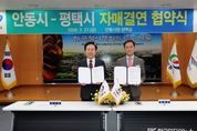 [ 한국미디어뉴스 이보영 기자 ] 안동시는 2월 27일 안동시청에서 평택시와 자매결연 협약을 체결하고 경제․문화․관광‧농업 등 전 분야에 걸친 상생발전의 닻을 올렸다. 이번 협약은 ‘한국 정신문화의 수도’ 안동과 ‘첨단산업‧국제물류 중심도시’ 평택이 각자의 강점을 결합해 지속 가능한 협력 모델을 구축하고자 추진됐다. 양 도시의 인연은 2024년 4월 평택시가 안동시에 자매결연을 공식 제안하면서 시작됐으며, 이후 2년에 걸친 실무진의 상호 방문을 통해 구체적인 협력사업을 논의해 왔다. 특히 양 도시는 행정교류를 넘어 재난 상황에서 끈끈한 연대를 보여왔다. 지난해 3월 평택시는 안동 대형산불 피해 복구를 위해 등짐펌프 100개를 긴급 지원했으며, 그해 5월 평택 소재 기업과 민간단체가 안동 산불 피해 청소년들을 위한 장학기금 2천만 원을 기탁하며 실질적인 협력과 상생의 의지를 보여줬다. 양 도시는 이번 자매결연을 계기로 지역별 강점을 활용한 특화사업을 적극 발굴하여 추진할 계획이다. 평택시는 국내 최대 주한미군 주둔지인 국제도시로서의 강점을 활용해 ‘주한미군 연계 교류 프로그램’을 제안했으며, 세계