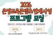 [ 한국미디어뉴스 이보영 기자 ] 서울 은평구는 오는 30일까지 ‘2026년 은평교육콘텐츠 연계사업’ 프로그램을 모집한다고 밝혔다. 구는 이번 공모를 통해 학교 교육과정 및 방과후 활동과 연계가 가능한 다양한 교육 프로그램을 발굴하고 아동·청소년에게 폭넓은 배움의 기회를 제공할 예정이다. 은평교육콘텐츠연계사업은 지역사회의 우수한 교육자원을 학교와 연결해 다채로운 교육 경험을 제공하고 있다. 이번 공모를 통해 모집하는 분야는 총 6개 분야로 ▲문화예술체육 ▲진로체험활동 ▲인성심리정서 ▲창의과학융합 ▲마을탐방 ▲기후생태환경이다. 신청 자격은 아동·청소년을 대상으로 한 교육콘텐츠자원을 보유하고 프로그램 운영 역량을 갖춘 서울시 소재 단체 또는 개인이면 신청할 수 있으나, 영리 목적의 단체 또는 학원은 제외다. 공모에 접수된 프로그램은 심사 과정을 거쳐 최종 선정되며, 선정된 프로그램은 관내 67개 초·중·고·특수학교와 연계해 운영된다.
