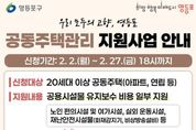 [ 한국미디어뉴스 이원영 기자 ] 영등포구가 공동주택 주민의 쾌적하고 안전한 생활여건 조성을 위해 ‘2026년 공동주택관리 지원사업’을 추진한다고 밝혔다. ‘2026년 공동주택관리 지원사업’은 관내 공동주택관리법의 적용을 받는 20세대 이상 공동주택을 대상으로 공용시설물의 유지관리에 필요한 사업비를 지원하는 사업이다. 구는 올해 총 9억 원의 예산을 투입해 관내 공동주택 단지별로 필요 사업비의 50~70% 이내, 최대 5,000만 원까지 지원할 계획이다. 지난해 구는 공동주택관리 지원사업으로 67개 단지에 83개 사업을 지원했다. 특히 위험수목 전지, 경로당 개보수, 어린이놀이시설 개보수 등을 통해 안전사고 예방은 물론 사회적 약자와 소외계층의 주거환경 개선에 기여했다. 올해는 지난해 대비 1억 원 확대된 예산을 바탕으로 입주민의 안전 확보와 함께 사회적 약자 및 소외계층을 지원한다. 주요 지원 분야는 ▲노인 편의시설 및 여가시설 설치·보수 ▲장애인 편의시설의 설치·개선 ▲공동주택 근로자 근무환경 개선(냉·난방기, 공기청정시설, 화장실·샤워실 개선 등) ▲보수‧보강이 필요한 공동주택 시설물 개선 사업 등이다.