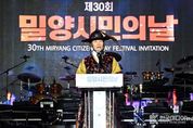 [ 한국미디어뉴스 이원영 기자 ] 경남 밀양시는 삼문동 야외공연장 일원에서 시민과 방문객 등 10,000여 명이 참석한 가운데 제30회 밀양 시민의 날 기념식 및 시민 한마당 축제를 성황리에 마무리했다고 18일 밝혔다. 이번 행사는 국제와이즈멘 밀양클럽이 주관해 읍·면·동 거리 퍼레이드를 시작으로 기념식, 시민 한마당 축제, 열린음악회, 불꽃놀이까지 다채로운 프로그램이 이어지며 시민의 자긍심과 화합을 다지는 축제의 장이 됐다. 기념식은 미래 세대의 주역인 밀양 청소년을 대표해 밀성고등학교 박해수·황윤준 학생의 시민헌장 낭독으로 시작됐으며, 제27회 밀양 시민대상은 문화 부문 김은민 극단메들리 대표, 산업 부문 조문수 한국카본 대표이사, 봉사 부문 손흥상 해심장학재단 이사장이 수상의 영예를 안았다. 또한 시군 통합 및 지방자치 30주년 기념 퍼포먼스를 통해 지난 30년간 밀양의 발전 여정을 되돌아보고, 눈부신 성장과 변화를 시민 모두가 함께 축하하는 뜻깊은 시간을 가졌다. 이후 열린 시민 한마당 축제에서는 국내 최고 수준의 밀양아리랑오케스트라의 연주와 가수 이기찬, 소프라노 심규연의 무대가 이어져
