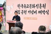 [ 한국미디어뉴스 이원영 기자 ] 논산시는 26일 노성면에 위치한 한국유교문화진흥원에서 ‘기념비 제막식’을 개최했다. 제막식에는 조관행 노성면 어르신회장을 비롯해 백성현 논산시장, 조용훈 논산시의회의장 및 시 의원, 관내 유관기관과 단체 관계자 등 200여 명이 참석했다. 백성현 논산시장은 “이 세상은 누군가의 희생과 헌신의 씨앗으로 피어나는 꽃과 같다”며 “민족의 얼을 길이 보전하기 위해 큰 결심을 해 주신 종중 어르신들께 깊은 감사의 인사를 드린다”고 말했다. 이어 “전 세계적으로 유학에 대한 관심이 높아지고 있는 만큼, 한국유교문화진흥원은 논산의 뿌리깊은 유교 문화와 정신을 널리 전파하는 중심 역할을 하게 될 것”이라며 “문화, 경제, 농업, 국방 등 모든 분야에서 논산의 가치를 높이기 위해 실천하는 행정을 펼쳐 나가겠다”고 말했다. 지난 2022년 개관한 한국유교문화진흥원은 한국유교문화와 충청지역 국학의 대표적인 연구기관이다. 건립 과정에서 파평윤씨노성대종중은 약 2만 평의 토지를 기부하며 논산이 지닌 유교적 가치와 정신을 후대에 온전히 계승하고 지역 문화의 뿌리를 굳건히 세울 수 있도록