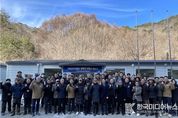 [ 한국미디어뉴스 김풍옥 기자 ] 영동양수건설소는 1월 6일 상부지 건설 현장사무소 개소식을 시행하고, 지역사회에 본격적인 상부지 공사의 시작을 알렸다. 이번에 개소한 상부지 사무소는 발전소 상부댐 인근 지역인 영동군 상촌면 고자리 531번지 일원에 부지면적 4,615㎡, 총 6동의 건물로 한수원·건설사업관리단·시공사 등 총 20여 명이 근무하는 사무공간, 안전교육장, 시험실, 숙소 등으로 이루어져 있다. 현장사무소 개소로 한수원과 협력사 간 긴밀한 협업을 통해 공사 전반의 효율성을 제고할 수 있는 안정적인 사업 추진기반을 갖추게 됐다. 이날 개소식에는 영동양수건설소 직원 외 상촌면장, 영동군청 양수발전팀장, 상촌면 이장단 및 주요 단체장 등 60여 명이 참석하여 사무소 개소 현황 및 상부지 공사 설명, 현판식 행사 등을 진행했고, 공사 관련 질의와 토론 등 지역과의 소중한 소통의 시간이 이어졌다. 임정묵 소장은 한수원과 지역주민과의 유대를 강조하며, 상부지 공사기간 동안 안전한 공사 진행을 주민들에게 약속했다. 이번 현장사무소 개소는 상부지 주요 공정의 안정적 관리와 효율적인 사업
