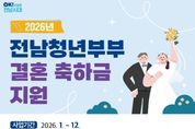 [ 한국미디어뉴스 이종철 기자 ] 전라남도는 청년부부의 결혼 초기 경제적 부담 완화와 전남 지역 정착 유도를 위해 ‘청년부부 결혼축하금’ 200만 원을 지원한다. 청년부부 결혼축하금 지원사업은 전남도가 2021년 전국 광역시·도 최초로 시행했다. 지원 대상은 혼인신고일 현재 49세 이하 부부다. 신청일 직전까지 전남에 6개월 이상 주소를 둬야 한다. 혼인신고 후 6개월이 지난 날부터 1년 6개월 이내 신청 가능하며, 신청한 달의 다음 달 15일에 받을 수 있다. 결혼축하금은 주소지 관할 읍면동 행정복지센터를 방문해 신청하거나 전남 아이톡에서 온라인으로 접수하면 된다. 전남도는 올해부터 청년부부 중 1명이 외국인이면 신청 기간을 기존 ‘혼인신고일’ 현재 1년 6개월 이내에서 ‘결혼비자 발급일’ 현재 1년 6개월 이내로 변경했다. 결혼비자 발급까지의 기간과 실질적 혼인생활 개시 기간의 격차를 줄여 결혼 초기 외국인 배우자의 안정적 정착을 지원하겠다는 취지로, 다문화 가구의 지역사회 유입을 촉진하는 정책 마중물 역할을 할 것으로 기대된다. 전남도는 청년부부 결혼축하