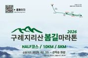 [ 한국미디어뉴스 이종철 기자 ] 전남 구례군은 아름다운 자연환경을 배경으로 한 ‘제1회 구례 지리산봄길 마라톤대회’가 오는 5월 2일 구례공설운동장에서 개최된다고 밝혔다. 이번 대회는 오마이뉴스 광주전라본부와 구례군육상연맹이 주최·주관하고 구례군이 후원하는 행사로 마라톤 종목 저변 확대와 구례 지역 홍보를 위해 마련됐다. 대회종목은 하프코스(21.0975km), 10km, 5km 총 3개 부문이다. 참가자들은 오전 8시 30분부터 순차적으로 출발해 지리산의 봄 풍경을 따라 달리게 된다. 참가 신청은 2월 23일부터 공식 홈페이지를 통해 접수를 시작하며, 모집 인원 4,000명 선착순으로 마감된다. 또한 원활한 대회 운영을 위해 자원봉사자도 함께 모집한다. 구례군 관계자는 “제1회 대회인 만큼 참가자 모두가 만족할 수 있도록 지원을 아끼지 않겠다”며 “지역 주민과 전국의 참가자들이 함께 어우러지는 건강과 문화의 축제로 자리매김하길 바란다”고 말했다.