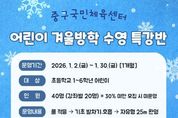 [ 한국미디어뉴스 최치남 기자 ] 인천중구시설관리공단은 겨울방학 기간 초등학생을 대상으로 기초 수영 능력 향상과 건전한 여가선용 기회를 제공하기 위해 ‘겨울방학 어린이 수영 특강반’을 운영하고, 회원 모집을 추진한다고 18일 밝혔다. 이번 특강반은 2026년 1월 2일부터 1월 30일까지 중구국민체육센터 수영장에서 초등학교 1~6학년 어린이를 대상으로 운영된다. 강습 내용은 물 적응을 시작으로 기초 발차기·호흡법을 거쳐 자유형 25m 완영을 목표로 구성됐다. 회원 모집은 12월 26일부터 12월 31일까지 진행된다. 중구국민체육센터 홈페이지를 통한 온라인 선착순 접수로 운영되며, 모집 인원은 총 40명(반별 20명)이다. 강습은 주 3회(월, 수, 금) 운영되며 수강료는 44,000원이다. 공단 관계자는 “겨울방학 기간 어린이들이 즐겁게 수영을 배우며 기초 수영 능력을 기를 수 있도록 특강반을 준비했다”라면서 “많은 어린이가 참여해 건강한 방학을 보낼 수 있기를 바란다”라고 말했다. 어린이 수영 특강반 신청 등 프로그램과 관련해 더 자세한 사항은 중구국민체육센
