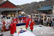 [ 한국미디어뉴스 김서안 기자 ] 의정부시는 2월 26일 (재)의정부문화재단이 주최하고 대한불교조계종 회룡사가 협력해 개최한 ‘2026 의정부 태조 어진 의례’를 통해 태조 어진 제작 완료를 공식적으로 알렸다. 이번 행사는 의정부와 깊은 인연을 지닌 태조 이성계의 역사적 의미를 재조명하고, 태조 어진 제작 완료를 계기로 도시 정체성을 역사문화 자산으로 확장하고자 마련됐다. 행사는 총 3부로 구성됐다. 1부는 의정부시청 태조홀에서 ‘의정부 역사문화포럼: 조선 태조‧태종 재회의 의미’를 주제로 열렸다. 태조 이성계 어진 제작에 참여한 권오창 화백의 제작 완료 보고와 함께 의정부 태조 어진 제작의 의미를 조명하는 발제와 토론이 진행됐다. 또한 의정부문화재단이 준비 중인 태조와 태종의 상봉을 주제로 한 창작 뮤지컬 제작 계획도 발표됐다. 2부 행사는 시청 본관 입구에서 태조 어진 제작 완료를 알리는 고유제로 진행됐다. 고유제는 중대한 일을 시작하거나 마친 뒤 그 사실을 신명이나 선현에게 알리는 전통 의례로, 이날 의례는 제작이 완료된 태조 어진을 기념하는 자리로 엄숙하게 거행됐다. 고유제 이후 어진은